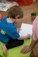 Bij de peuterlessen maak ik veel gebruik van prentenboeken, gaat yogabeer mee en doen we veel dieren na. We dansen, tekenen, masseren en spelen.